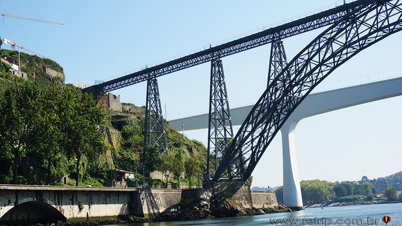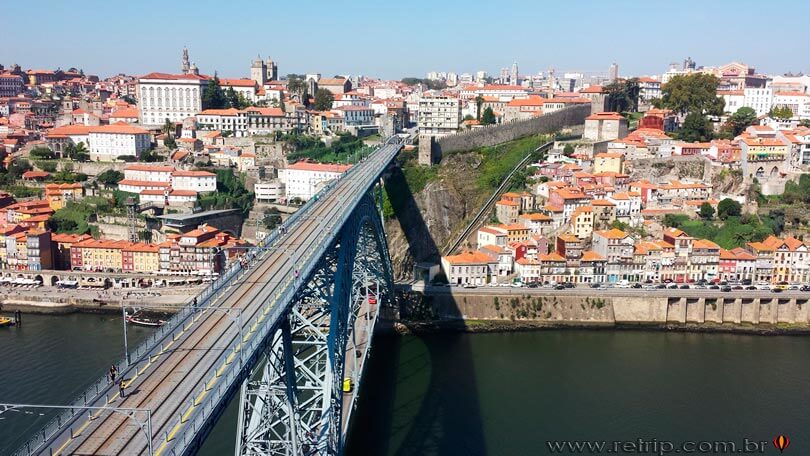Como disse no dia anterior, tem a possibilidade de ir ao Cave do Vinho Sandeman e você pode fazê-lo descendo de teleférico. Como optei por não conhecê-lo, também não andei no teleférico. Saindo do Mosteiro da Serra do Pilar seguimos pela ponte D. Luiz I só que pela parte superior. Belíssima a vista!