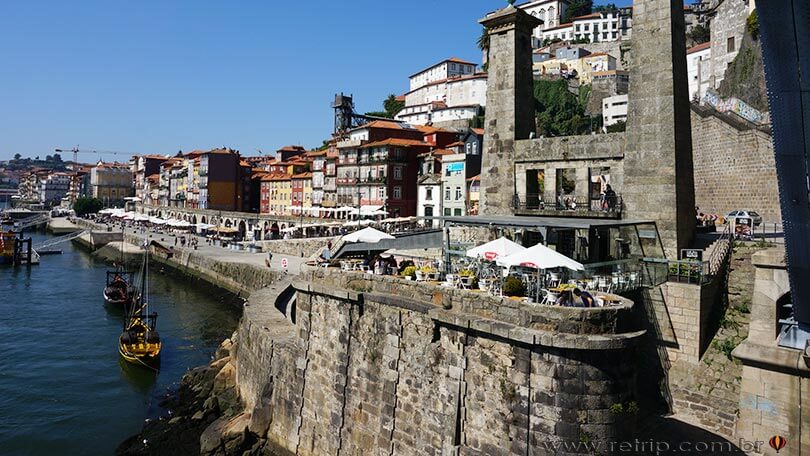 Passamos em frente ao Mosteiro de São Bento da Vitoria e Igreja N. S. da Vitoria. Antes de seguirmos na direção do Instituto dos Vinhos do D’ouro e Porto, passamos pelo Miradouro onde já foi possível ver a beleza da baixa do Porto. Vimos o Palácio da Bolsa e paramos para um sorve na Praça do Infante D. Henrique. Descemos a Rua da Alfândega até o Cais da Estiva onde começamos a andar à beira do Rio D’ouro. Deliciosa a caminhada. Cais da Ribeira e Cais do Guimarães. Para descansarmos aproveitamos para fazer o passeio de barco pelo Rio D’ouro vendo as grandes pontes que com suas histórias são destaques até os dias de hoje.