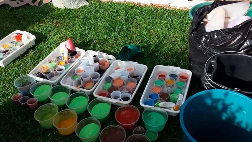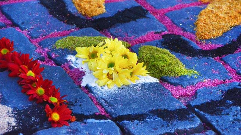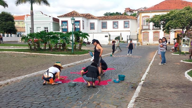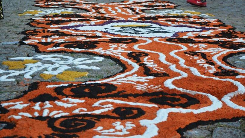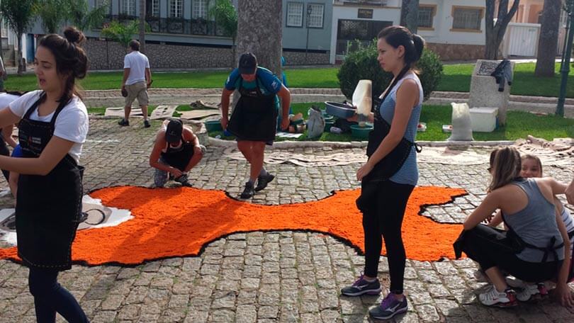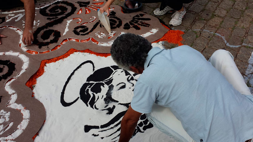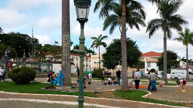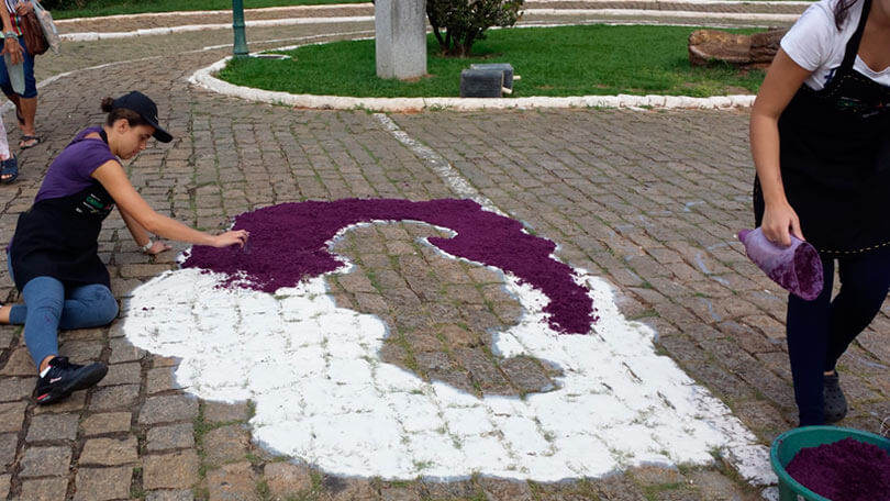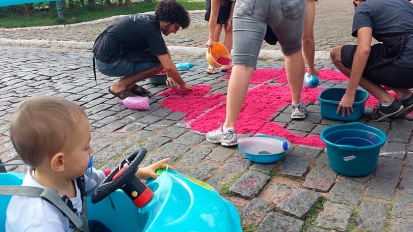 Na sexta-feira pela manhã, estudantes de arte, moradores e artistas da cidade, começam os trabalhos de confecção dos tapetes de rua por várias ruelas e avenidas são joanenses.